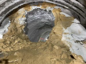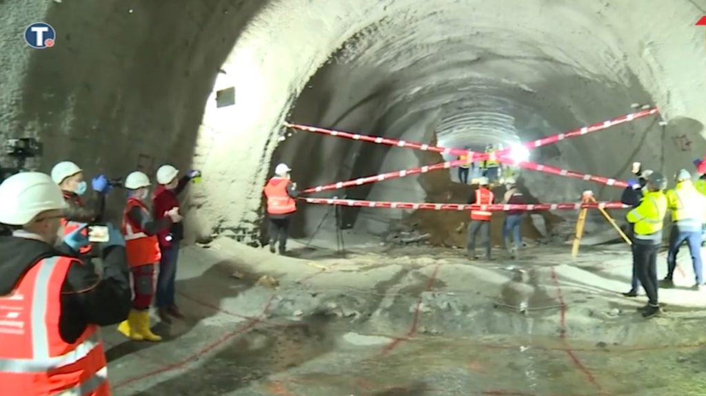 Изградња тунела обухвата две тунелске цеви, са по једним колосеком, укупне дужине 2,2 километра. Десна тунелска цев, дуга 1.086 метара, пробијена је 3. априла. Након пробијања и последњег кубика земље у десној тунелској цеви, радници са јужног портала су прошли кроз рупу и поздравили се уз аплауз са колегама с друге стране.