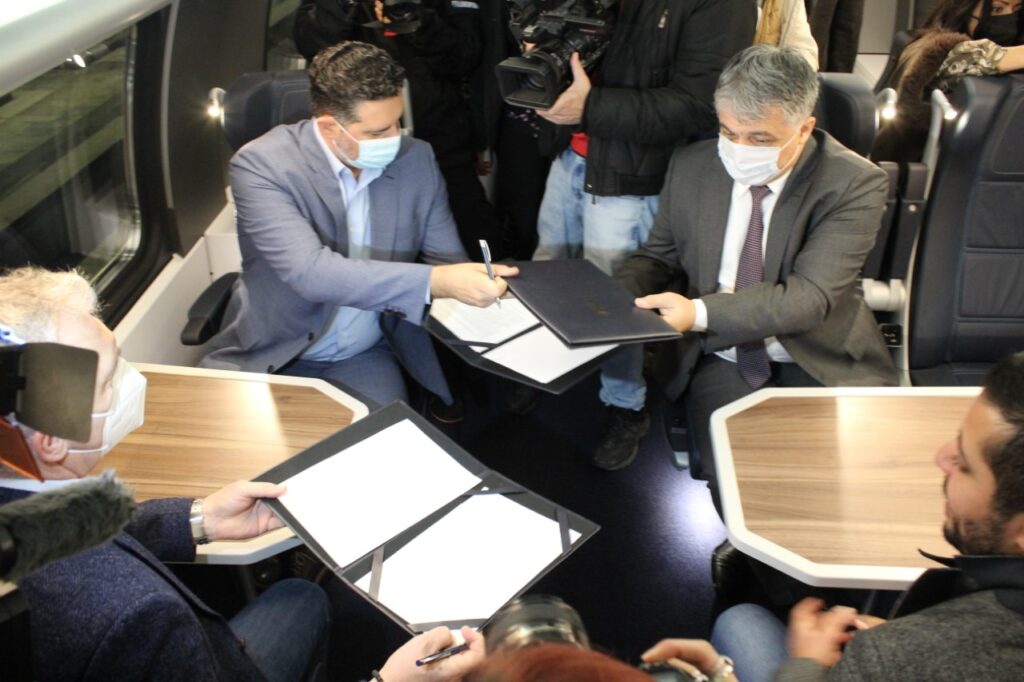 Меморандум је симболично потписан у новом, најсавременијем возу српских железница за брзине до 200 км/сат, у железничкој станици Београд Центар.