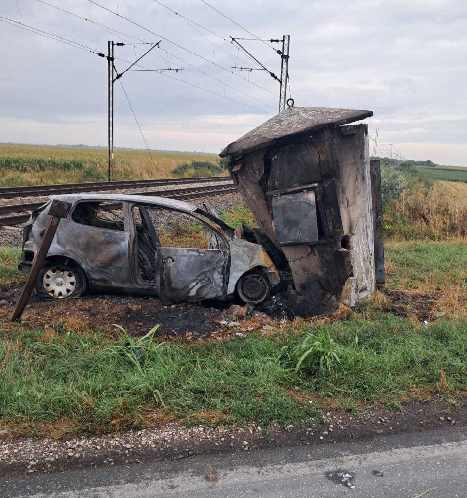 Синоћ на путном прелазу између Голубинаца и Путинаца аутомобил слетео са пута и запалио се, возач тешко повређен, а тотално уништена бетонска железничка кућица на путном прелазу